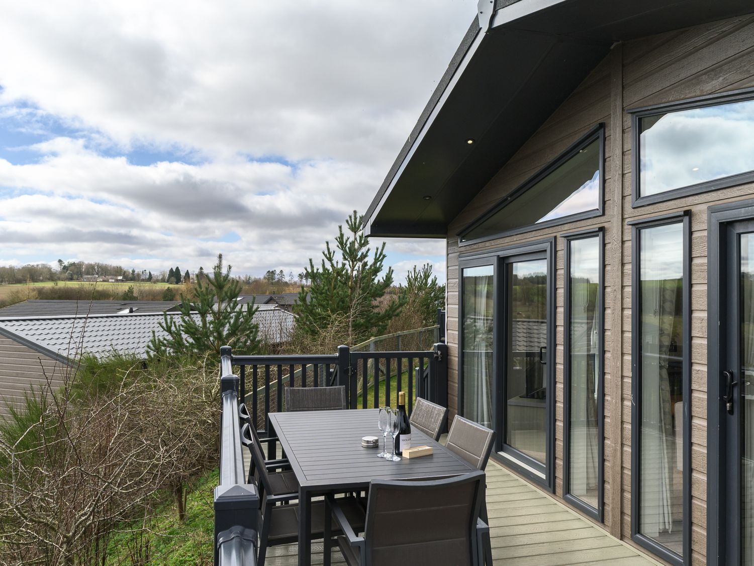 Outside, the decking opens onto fresh air and countryside views.